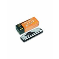 Диатоническая губная гармошка с пластиковой гребенкой, крышками из нержавеющей стали и латунными язычками.