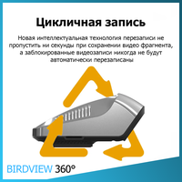 Видеорегистратор оснащён циклической записью: новые записи автоматически перезаписываются вместо самые старых записей, когда карта памяти заполнена, кроме заблокированных видео.