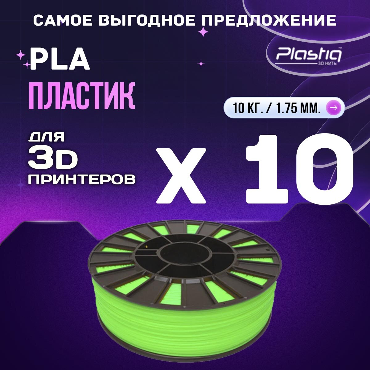 Купить 10kg PLA пластик для 3D печати «Plastiq», Салатовый с доставкой по всей России.