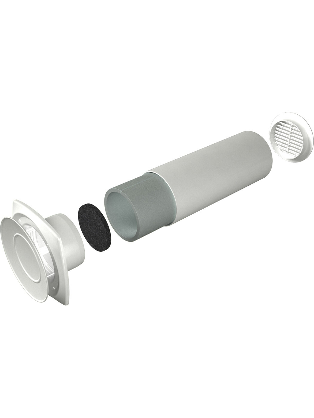 Клапан приточный состоит из пластикового воздуховода длиной от 0,5 до 1м, который монтируется в наружную стену здания. С уличной стороны он закрывается уличным воздухораспределителем.