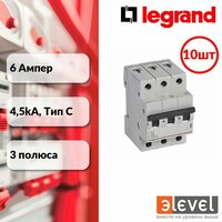 10шт. Legrand RX3 Автоматический выключатель 3P 6А (C) 4,5kA, 419705