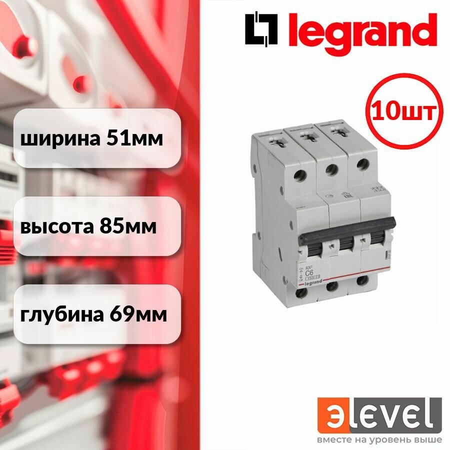 Купить 10шт. Legrand RX3 Автоматический выключатель 3P 6А (C) 4,5kA, 419705 с доставкой по всей России.