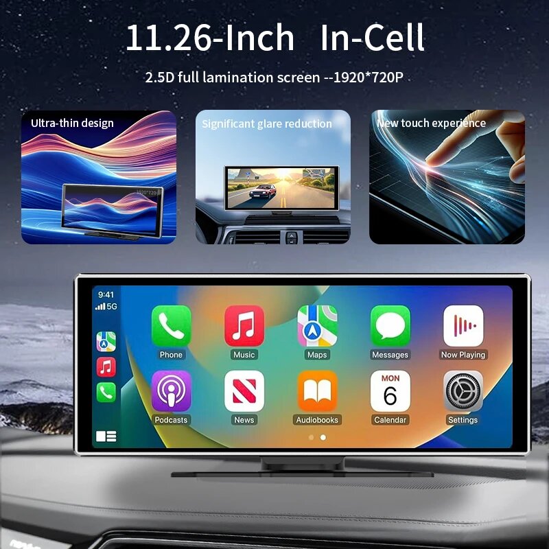 Купить 11,26-дюймовый портативный беспроводной экран CarPlay, мультимедийный видеоплеер, радио FM Wi-Fi, совместимый с Android Auto и Apple CarPlay, 11.26 inch Only с доставкой по всей России.