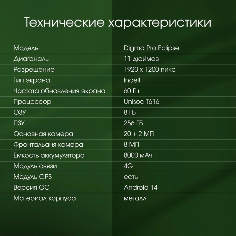 | Диагональ экрана | 11" |