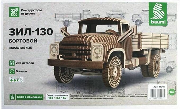 Купить Конструктор из дерева. ЗИЛ-130 Бортовой 1:35. Baumi 11007 с доставкой по всей России. Конструктор из дерева. ЗИЛ-130 Бортовой 1:35. Baumi 11007: сравнение цен, характеристики, фото, актуальное наличие и цены.