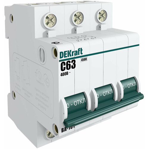 Автоматический выключатель серии ВА-101 DEKraft; 3P; номинальный ток 1 А; характеристика С; отключающая способность 4,5 кА. Новый механизм расцепления мгновенно разрывает цепь при возникновении аварии. 5 монолитных заклепок повышают прочность корпуса аппарата. Сплошная лицевая панель обеспечивает безопасность эксплуатации аппарата. Боковые каналы охлаждения повышают стабильность работы при высоких температурах окружающей среды. Полностью автоматизированный контроль качества производства.