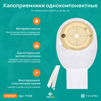 | Особенности калоприемников и мочеприемников | дренируемый, однокомпонентный, прозрачный |