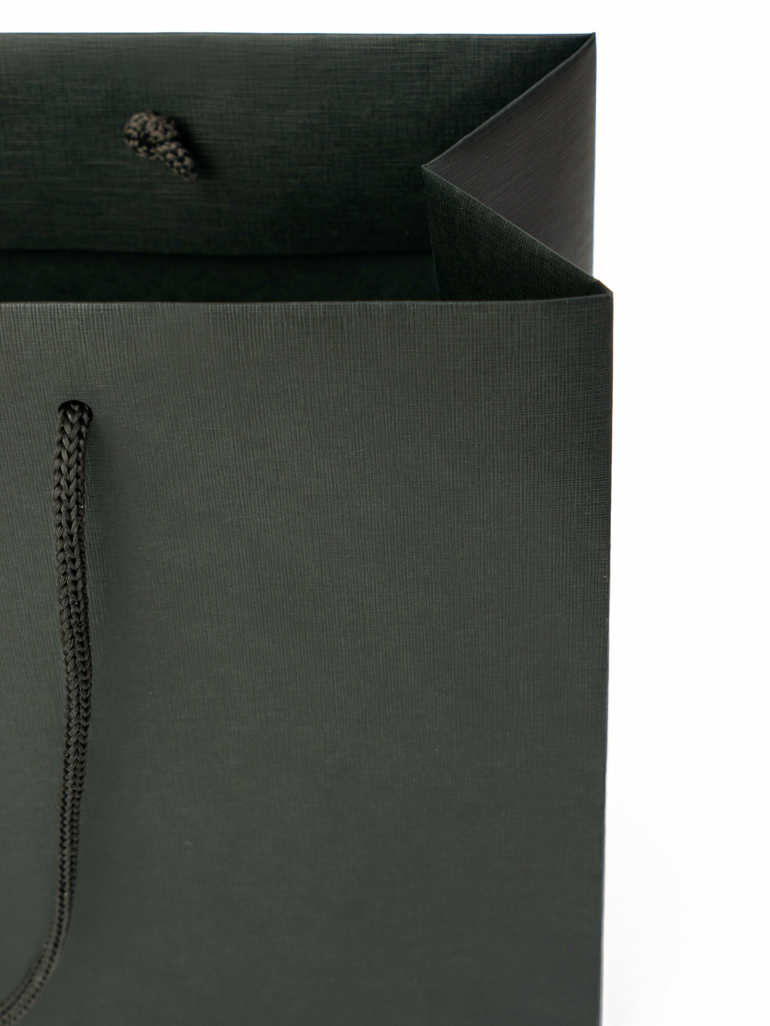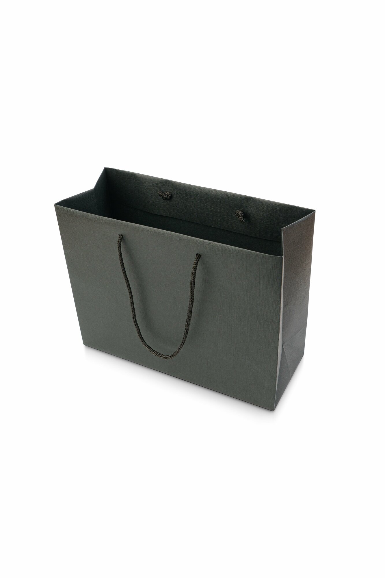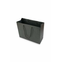Минимальная партия (пачка): 12 шт. Цвет: черный Размер (ш*в*г): 40*30*12 Материал: дизайнерская бумага с тиснением лен 120 гр. Ламинация: Нет Ручки: черный шнур пп, 5 мм Габариты пачки (ш*в*г): 40*30*6 Максимальная нагрузка: 6 кг Плотность 120 гр.