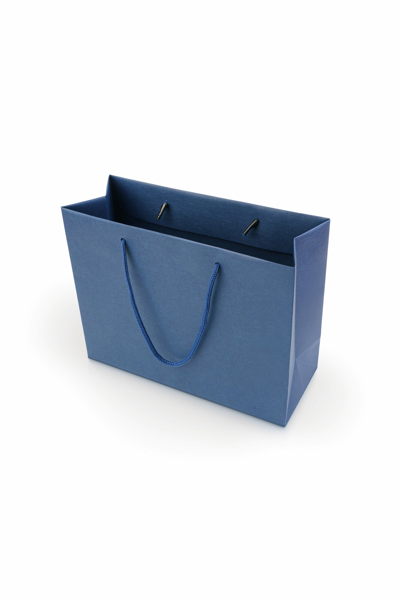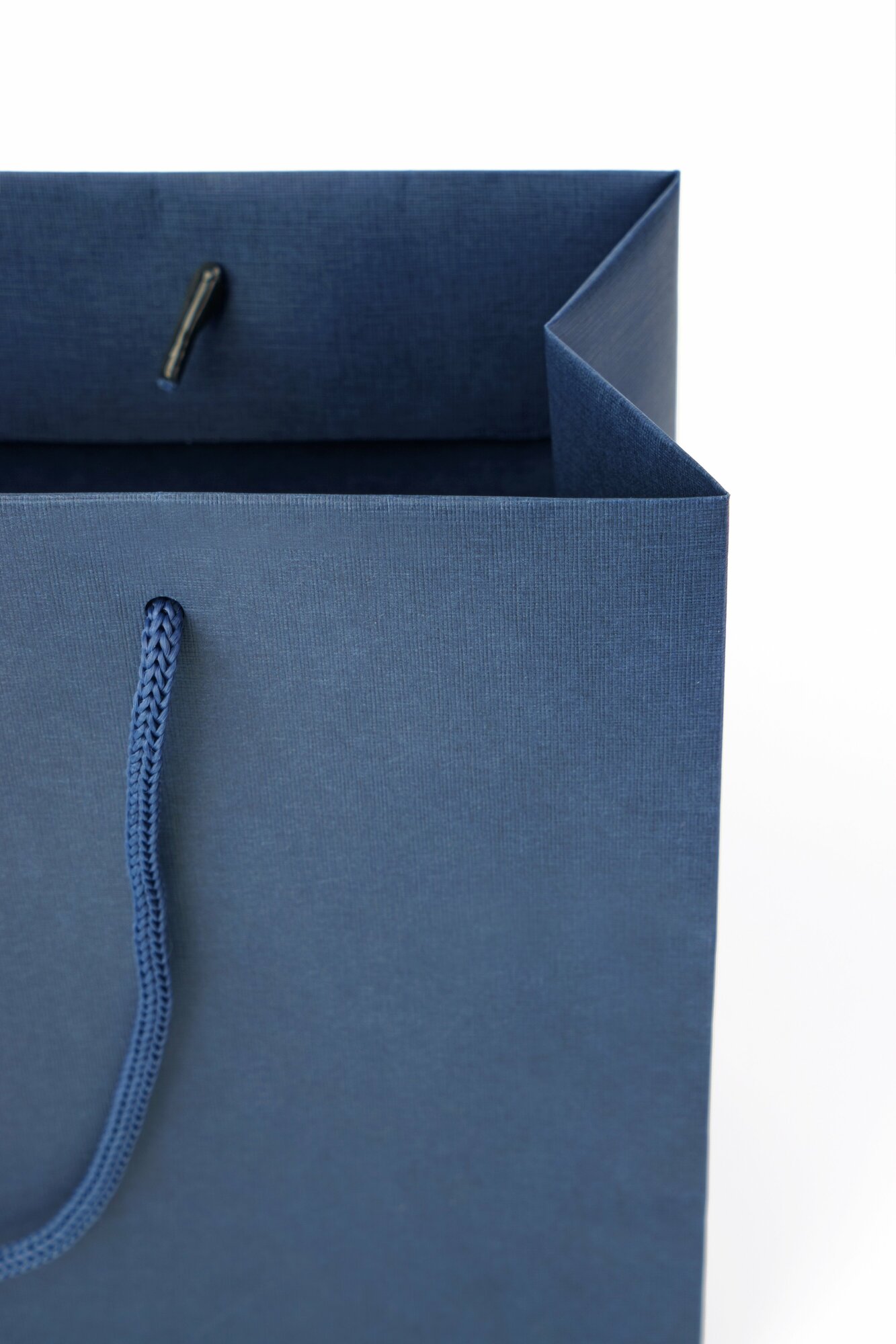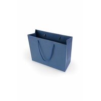 Минимальная партия (пачка): 12 шт. Цвет: темно-синий Размер (ш*в*г): 25*19*10 Материал: дизайнерская бумага с тиснением лен 120 гр. Ламинация: Нет Ручки: темно-синий шнур пп, 5 мм Габариты пачки (ш*в*г): 25*19*6 Максимальная нагрузка: 5 кг Плотность 120 гр.
