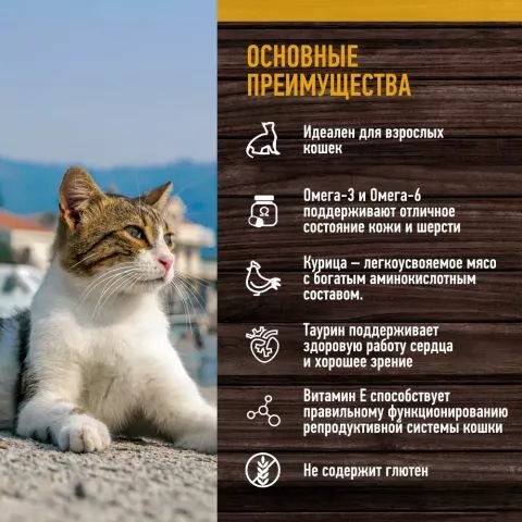 дополнительный рацион для взрослых кошек. Корм изготовлен из свежего мяса курицы с добавлением аппетитного нежного желе, которое придает корму превосходный вкус. Преимущества:• Курица- легкоусвояемое диетическое мясо с богатым аминокислотным составом. Способствует развитию и росту мышц, укреплению природного иммунитета кошки.• Таурин поддерживает нормальную работу сердца, нервной системы, головного мозга и зрение.• Витамин Е способствует правильному функционированию репродуктивной системы кошки.• Не содержит глютен, поэтому не вызывает аллергию у питомцев