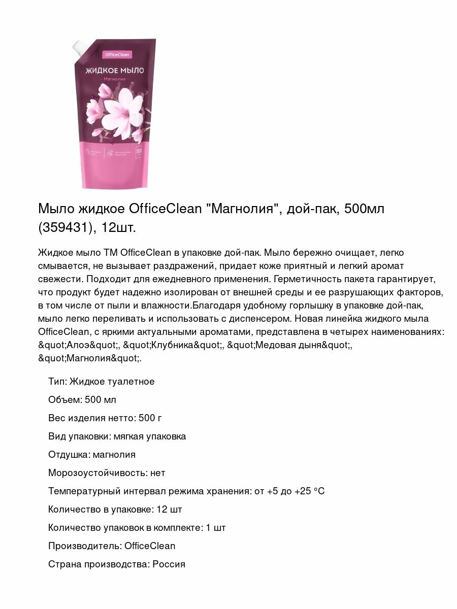 Купить Мыло жидкое OfficeClean «Магнолия», дой-пак, 500мл (359431), 12шт. с доставкой по всей России. Мыло жидкое OfficeClean «Магнолия», дой-пак, 500мл (359431), 12шт.: сравнение цен, характеристики, фото, актуальное наличие и цены.