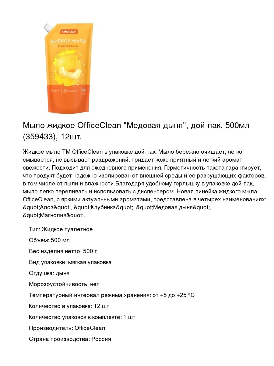 Жидкое мыло ТМ OfficeClean в упаковке дой-пак. Мыло бережно очищает, легко смывается, не вызывает раздражений, придает коже приятный и легкий аромат свежести. Подходит для ежедневного применения. Герметичность пакета гарантирует, что продукт будет надежно изолирован от внешней среды и ее разрушающих факторов, в том числе от пыли и влажности. Благодаря удобному горлышку в упаковке дой-пак, мыло легко переливать и использовать с диспенсером. Новая линейка жидкого мыла OfficeClean, с яркими актуальными ароматами, представлена в четырех наименованиях: "Алоэ", "Клубника", "Медовая дыня", "Магнолия".