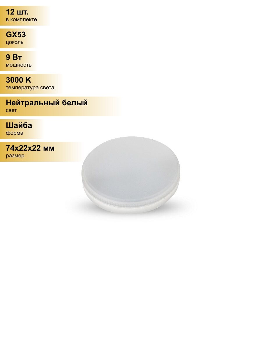 (12 шт.) Светодиодная лампочка Ergolux GX53 св/д 9W(720lm) 3000К 2K матовая 74х22 пластик/алюм. LED-GX53-9W-GX53-3K Нейтральный белый. Цоколь GX53: сравнение цен, характеристики, фото, актуальное наличие и цены.