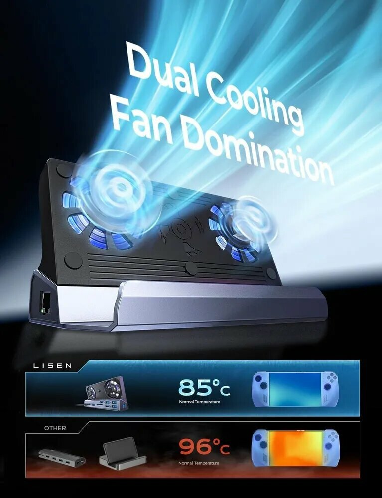 Док-станция, для ROG Ally, 10 в 1, двойной вентилятор, серебристый: сравнение цен, характеристики, фото, актуальное наличие и цены.