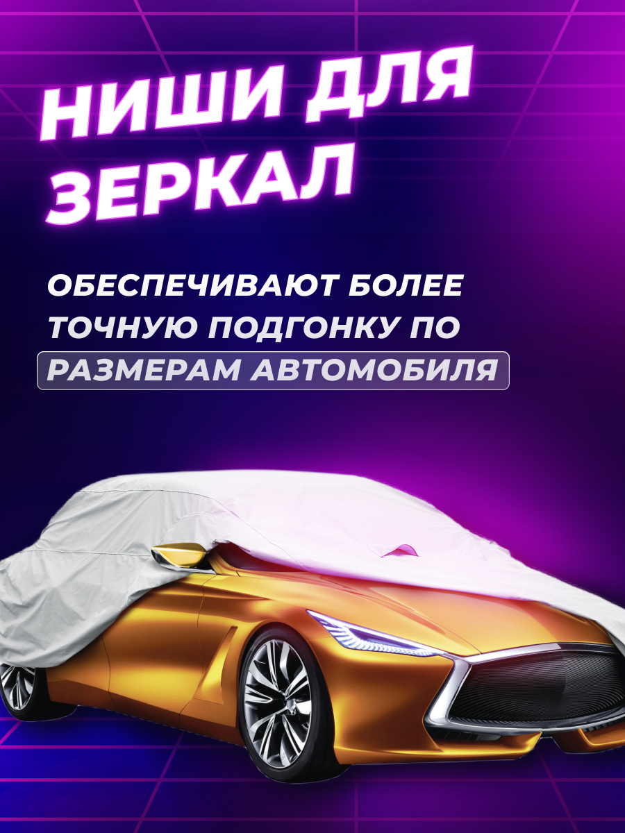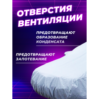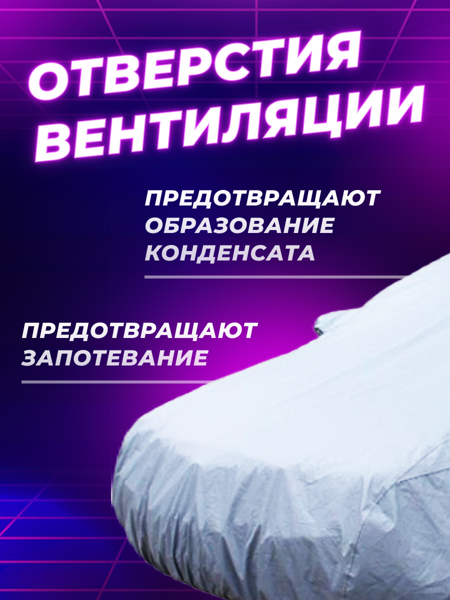 Чехол помогает предотвратить запотевание стекол и зеркал, а также защищает автомобиль в жаркую погоду. Защитный тент подходит большинству автомобилей, включая седаны, внедорожники, кроссоверы и универсалы. Может использоваться как зимний утеплитель для авто зимой.