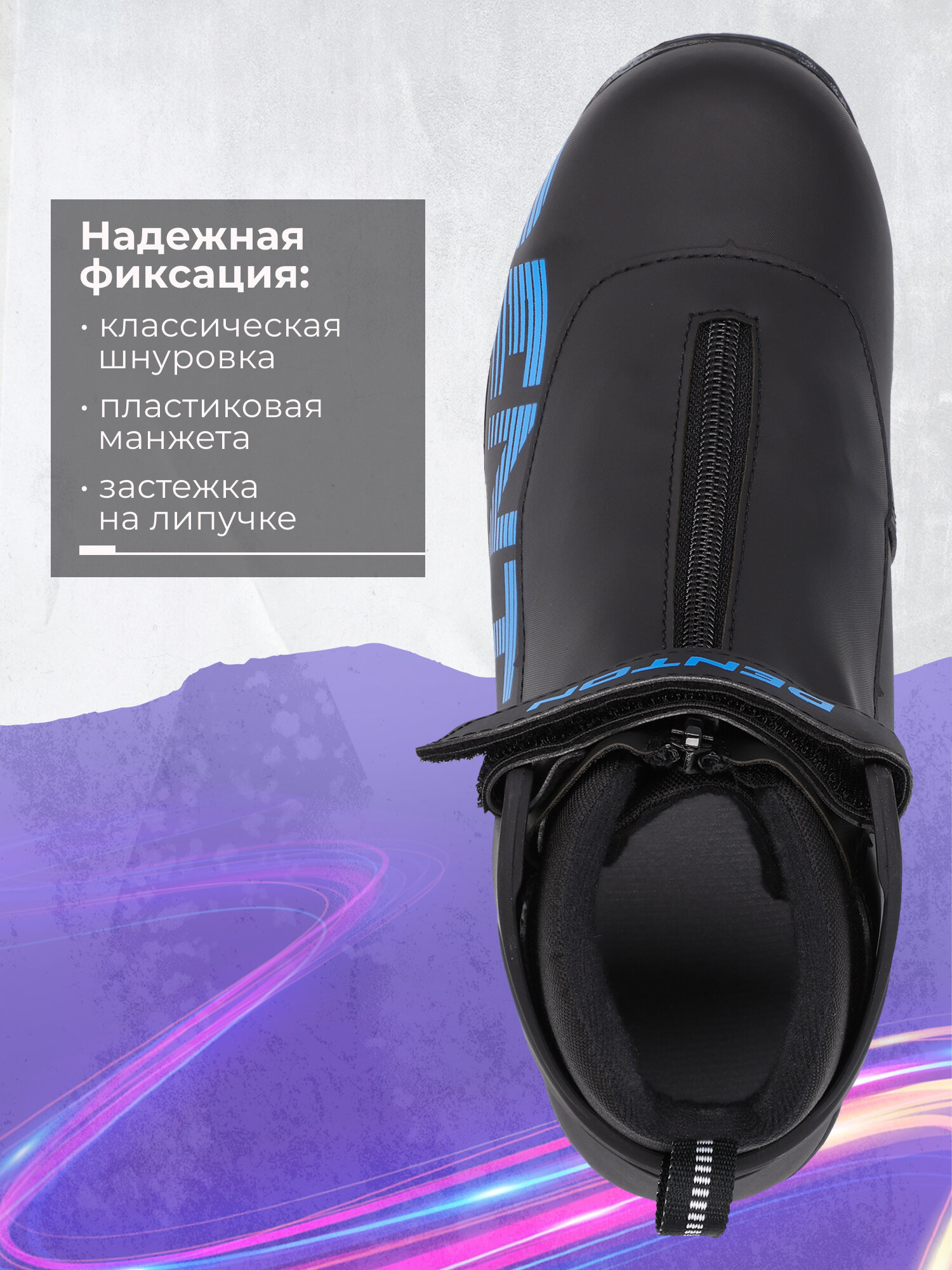 Детские ботинки для беговых лыж Denton Storm начального уровня с системой крепления NNN предназначены для прогулочного катания классическим стилем, активного отдыха всей семьей и занятий физкультурой в школе. Особенность данной модели — специальная манжета из прочного пластика для надежной фиксации голеностопа и дополнительной безопасности и удобный ремень — застежка-липучка позволяет регулировать ботинок на ноге. Дополнительный клапан на молнии поверх шнуровки, который предотвращает попадание снега и влаги внутрь ботинка, обеспечивает комфорт и сухость во время катания. Модель лыжных ботинок для детей и подростков обеспечивает отличную фиксацию ноги, которая осуществляется удобной классической шнуровкой. Верх ботинка выполнен из высококачественного синтетического морозостойкого материала, который гарантирует долгий срок службы. Специально разработанный утеплитель обеспечивает превосходную защиту от холода. В модели для мальчиков и девочек предусмотрена комфортная улучшенная анатомическая колодка ботинка средней полноты, которая гарантирует идеальную посадку по ноге для точного контроля над лыжами и максимальной стабильности. Практичные петли на пятке помогают легко надеть ботинок. Универсальный дизайн подойдет всем любителям активного отдыха. Условия эксплуатации ботинок: до -20 °С. Лыжные ботинки Denton — прекрасный выбор для катания на лыжах, а также отличный подарок на Новый год, день рождения, Рождество! Ботинки совместимы с креплениями NNN, Prolink и Turnamic. Широкий размерный ряд с 30 по 38. Товар подходит для мальчиков и девочек. Состав: Верх: 70% Поливинилхлорид (ПВХ), 20% Термопластичный полиуретан (ТПУ), 10% Нейлон; Подкладка: 100% Полиэстер; Подошва: 94% Термопластичный эластомер (ТПЭ), 6% Металл. Срок гарантии – 1 год.