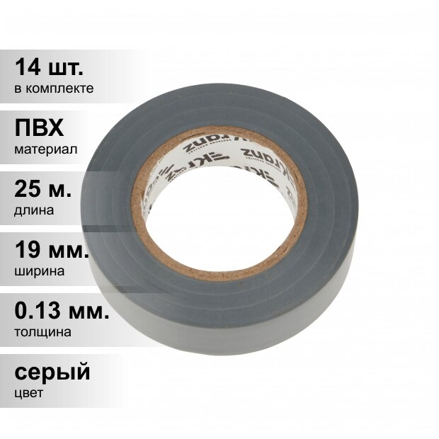 (14 шт.) Изолента ПВХ KRANZ 0.13х19 мм, 25 м, серая (5 шт./уп.) KR-09-2208: сравнение цен, характеристики, фото, актуальное наличие и цены.