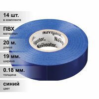 (14 шт.) Изолента ПВХ синяя 19мм 20м Navigator NIT-A19-20/B 71 114 Электроизоляционная лента (изолента) Navigator серии NIT на основе ПВХ - расходный материал при электротехнических работах, используемый для обмотки проводов и кабелей с целью их электроизоляции. Изолента профессиональная 0,18x19 мм Цвет синяя Ширина ленты 19 мм Длинна рола 20 м