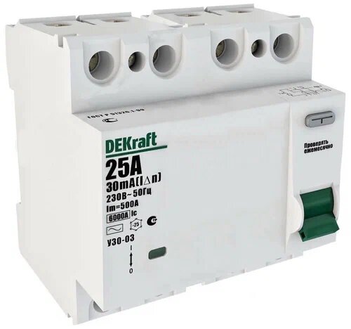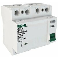 | Дополнительная информация | Устройство защитного отключения DEKraft (ВДТ) 4P 40А 30мА тип АС С 6кА |
