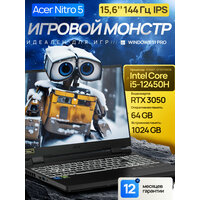 15.6″ Игровой ноутбук Acer Nitro 5 AN515, 144 Hz Full HD, Intel Core i5-12450H (8 Ядер, 4.4 ГГц), RAM 64 ГБ, SSD 1 ТБ, NVIDIA GeForce RTX 3050 (4 Гб GDDR6), Windows 11 Pro + Microsoft Office 2021 Pro Plus, Русская раскладка, EAC: сравнение цен, характеристики, фото, актуальное наличие и цены.