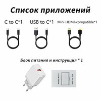 Портативный монитор * 1 Адаптер питания 5V3A * 1 HDMI - совместимый кабель Переключиться на Mini HDMI - совместимый кабель * 1 Кабель с двойным интерфейсом * 1 Линия USB c * 1 Колпачок противоскользящий * 1 Руководство пользователя * 1