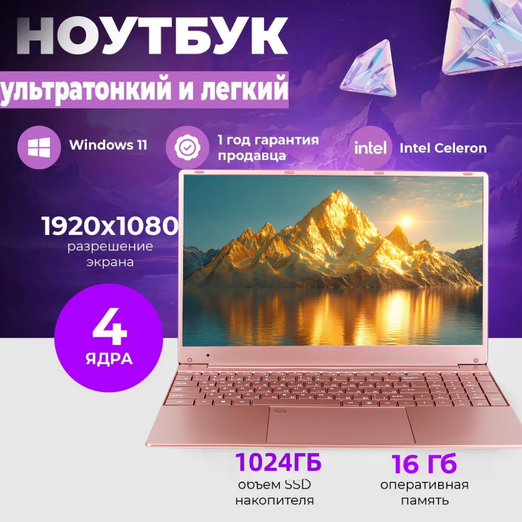 Купить 15.6″ Ноутбук для работы и учебы, Notebook, RAM 16 ГБ, SSD 1024 ГБ , Intel N5095, русская раскладка Розовый с доставкой по всей России.