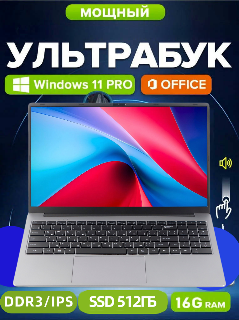 Купить 15.6″ Ноутбук для работы и учебы, RAM 16 ГБ, SSD 512Гб, 1920×1080, Intel I5, Windows 11, цвет Серый раскладка с доставкой по всей России.