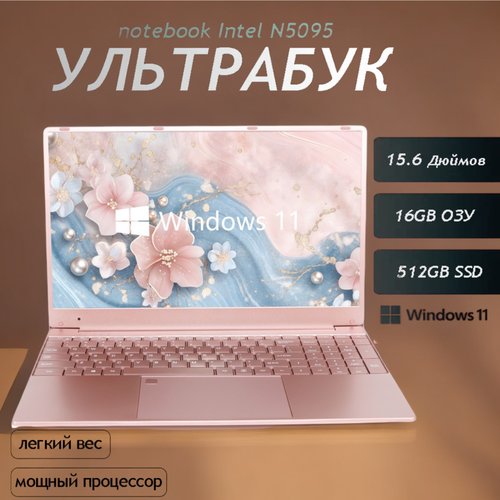 Купить 15,6″ Ноутбук для работы и учебы, RAM 16 ГБ, SSD 512GB , IPS Full HD 1920×1080, Intel N5095, Windows 11, Розовый золото с доставкой по всей России.