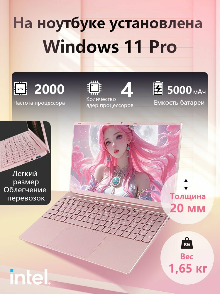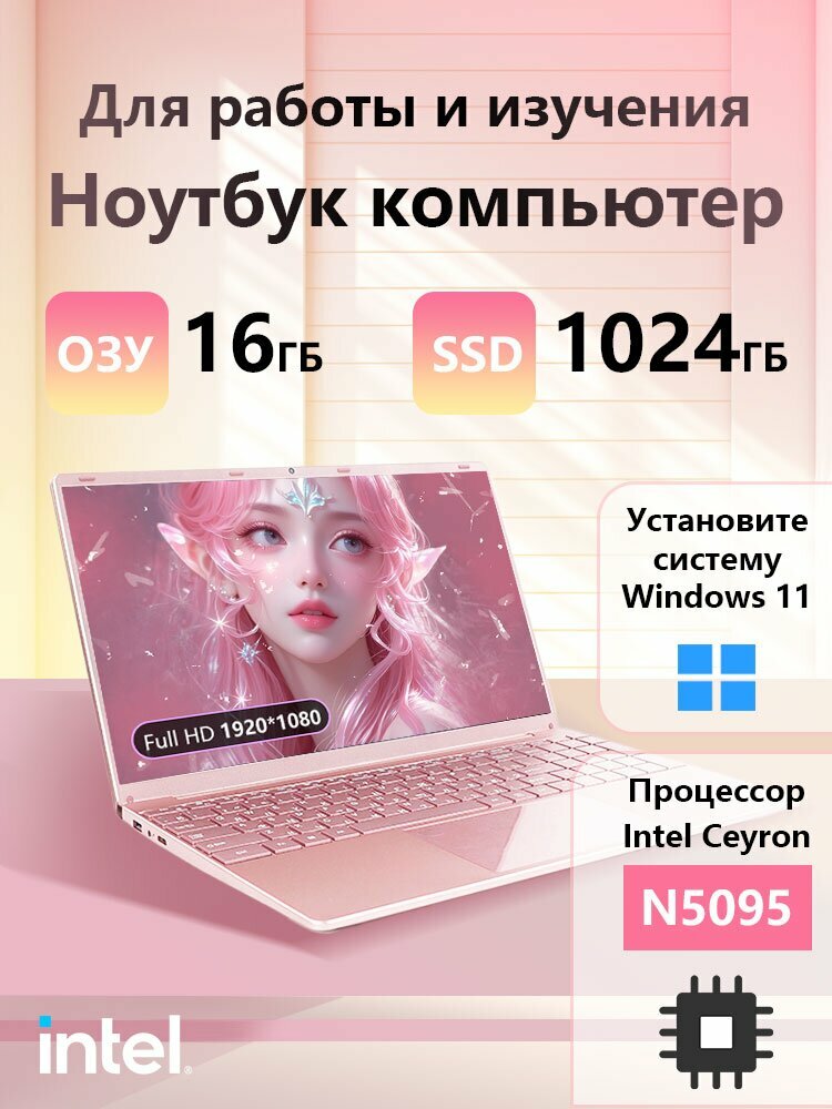 Купить 15.6″ Ноутбук для работы и учебы, Notebook, RAM 16 ГБ, SSD 1024 ГБ , IPS Full HD, Intel N5095, русская раскладка Розовый с доставкой по всей России.