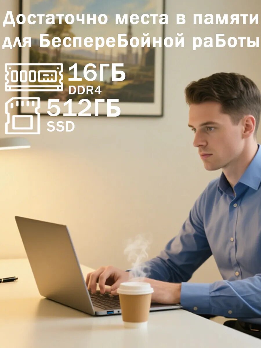 Купить 15.6″ Ноутбук для работы и учебы, Notebook, RAM 16 ГБ, SSD 1024 ГБ, IPS Full HD , Intel N95, Клавиатура русского языка с доставкой по всей России.