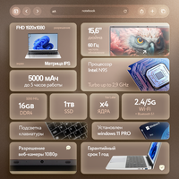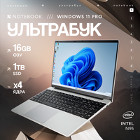 Купить 15.6″ Ноутбук Intel N95, для работы и учебы, Notebook, RAM 16 ГБ, SSD 1024ГБ, IPS Full HD 1920×1080, Windows 11 pro, цвет Mid Gray, русская раскладка с доставкой по всей России.