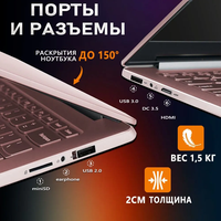 14.1' Ноутбук Intel N4000, RAM 8 GB, SSD 256 GB, Intel UHD Graphics, Windows 10 Pro, IPS, серый