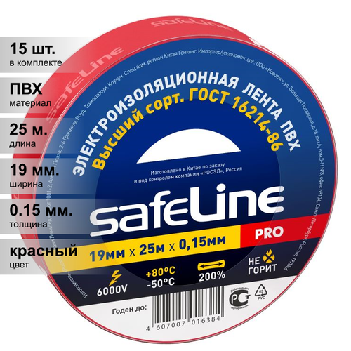 (15 шт.) Изолента ПВХ красная 19мм 25м Safeline: сравнение цен, характеристики, фото, актуальное наличие и цены.