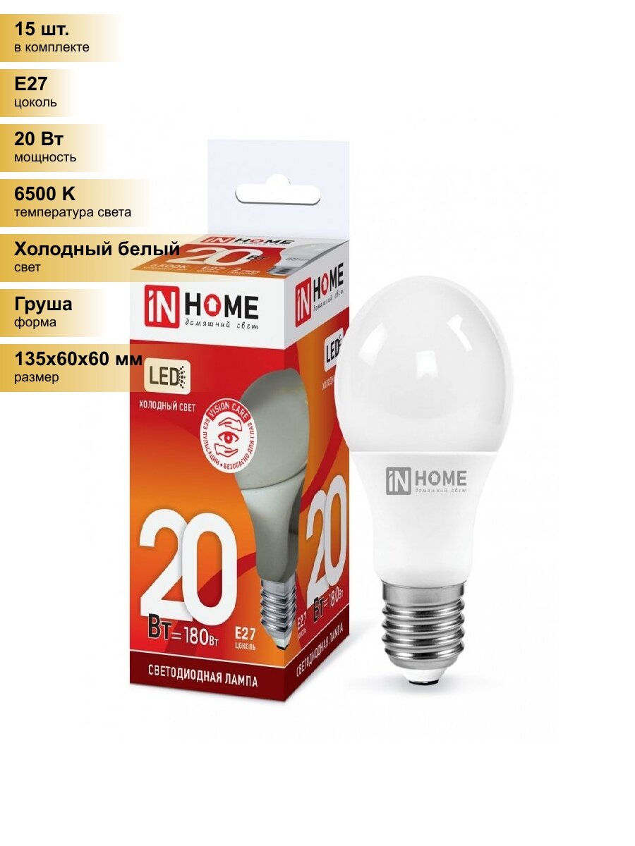 (15 шт.) Светодиодная лампочка ASD/inHome VC ЛОН A60 E27 20W(1800lm) 6500К 6K 135×60 (без пульсации) 0310 Холодный белый. Цоколь E27: сравнение цен, характеристики, фото, актуальное наличие и цены.