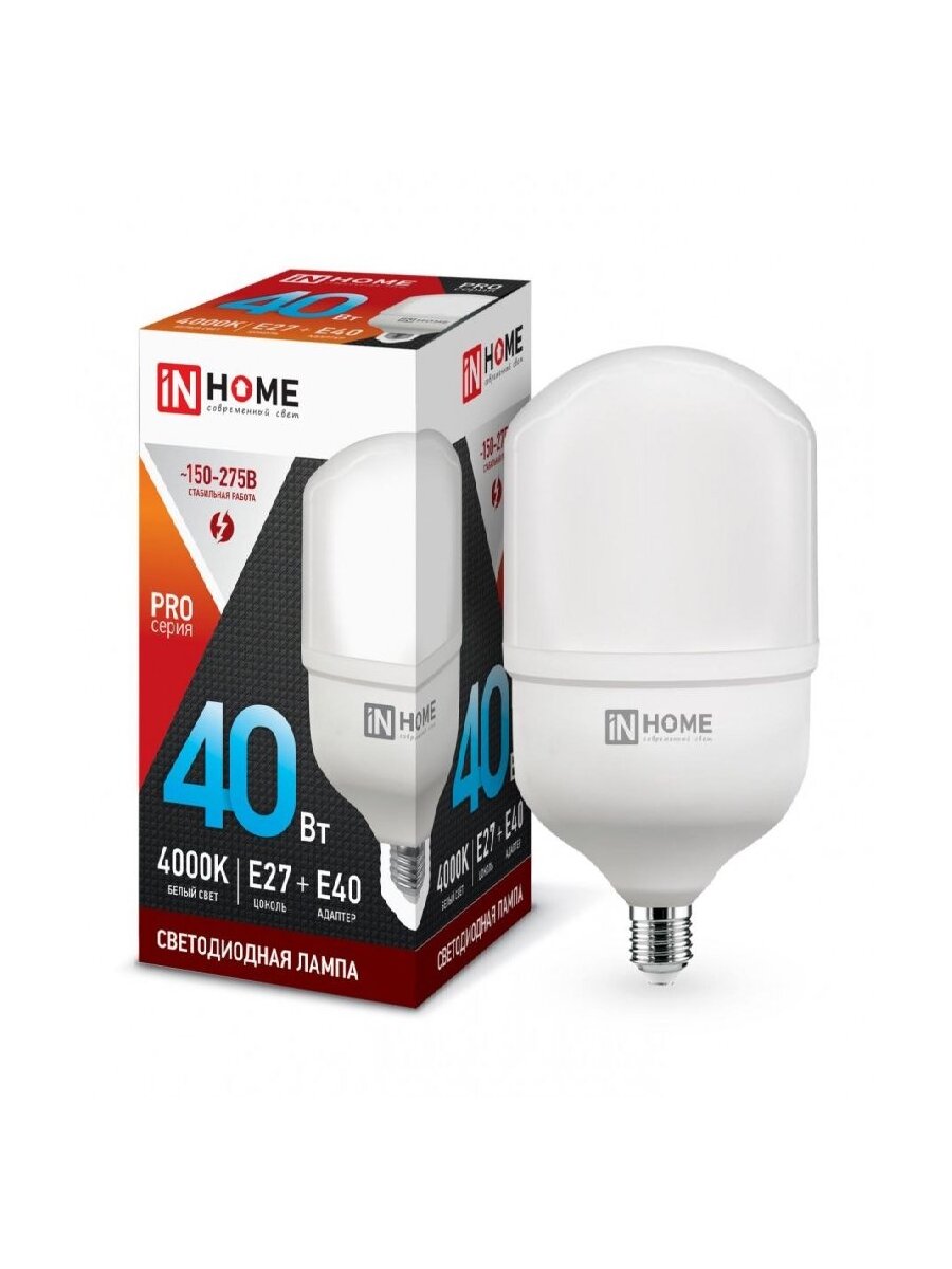 (15 шт.) Светодиодная лампочка ASD/InHome высокомощн. E27 40W (3600lm) 4000К 4K 230V с адаптером E40 181×100 HP-PRO 1095 Нейтральный белый. Цоколь E27: сравнение цен, характеристики, фото, актуальное наличие и цены.
