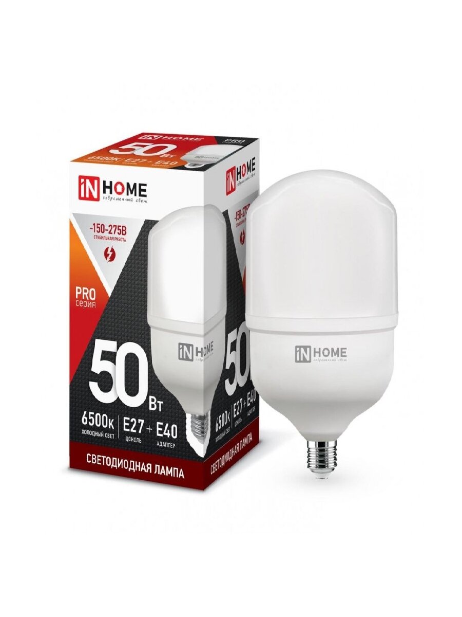 (15 шт.) Светодиодная лампочка ASD/InHome высокомощн. E27 50W (4500lm) 6500К 6K 230V с адаптером E40 200×114 HP-PRO 1125 Холодный белый. Цоколь E27: сравнение цен, характеристики, фото, актуальное наличие и цены.