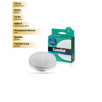 (10 шт.) Светодиодная лампочка Camelion GX53 св/д 15W(1350lm 120°) 6500K 6K матовая 30x74 LED15-GX53/865/GX53 Холодный белый. Цоколь GX53