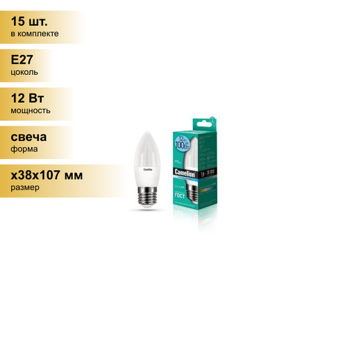 (15 шт.) Светодиодная лампочка Camelion Свеча E27 12W(970lm 220°) 4500K 4K матов. 107×38 пластик LED12-C35/845/E27 Нейтральный белый. Цоколь E27: сравнение цен, характеристики, фото, актуальное наличие и цены.