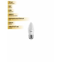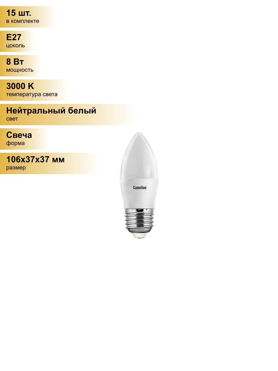 (15 шт.) Светодиодная лампочка Camelion Свеча E27 8W(720lm 220°) 3000K 2K матов. 106×37 пластик LED8-C35/830/E27 Нейтральный белый. Цоколь E27: сравнение цен, характеристики, фото, актуальное наличие и цены.