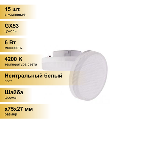 (15 шт.) Светодиодная лампочка Ecola GX53 св/д 6W 4200K 4K 27×75 матов. Light T5MV60ELC Нейтральный белый. Цоколь GX53: сравнение цен, характеристики, фото, актуальное наличие и цены.