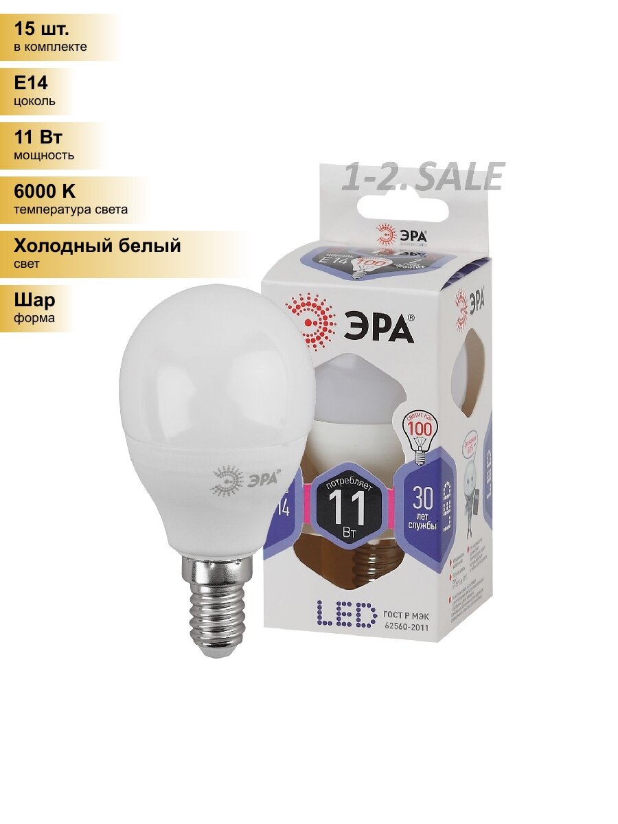 (15 шт.) Светодиодная лампочка ЭРА стандарт шар P45 E14 11W(880lm) 6000K 6K 2608 Холодный белый. Цоколь E14: сравнение цен, характеристики, фото, актуальное наличие и цены.