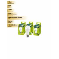 (15 шт.) Светодиодная лампочка Ergolux ЛОН A65 E27 20W(1950lm 270°) 4500K 4K матовая 134×65 пластик/алюм. LED-A65-20W-E27-4K Нейтральный белый. Цоколь E27: сравнение цен, характеристики, фото, актуальное наличие и цены.