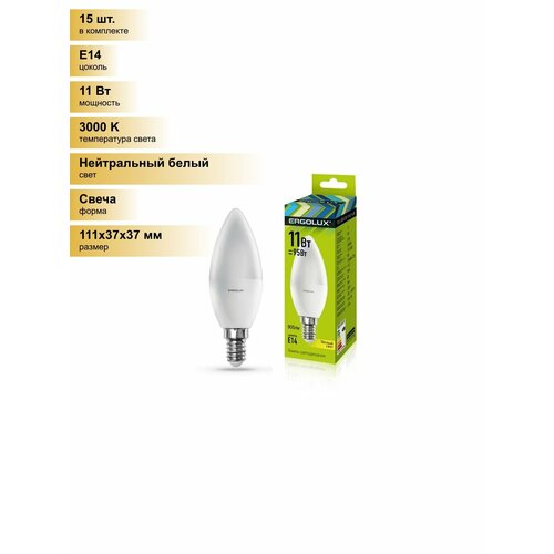 (15 шт.) Светодиодная лампочка Ergolux свеча C35 E14 11W(905lm 220°) 3000K 2K матовая 111×37 LED-C35-11W-E14-3K Нейтральный белый. Цоколь E14: сравнение цен, характеристики, фото, актуальное наличие и цены.