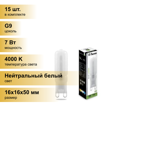 (15 шт.) Светодиодная лампочка Feron G9 230V 7W(540lm) 4000K 4K 50×16 матов. LB-431 25756 Нейтральный белый. Цоколь G9: сравнение цен, характеристики, фото, актуальное наличие и цены.