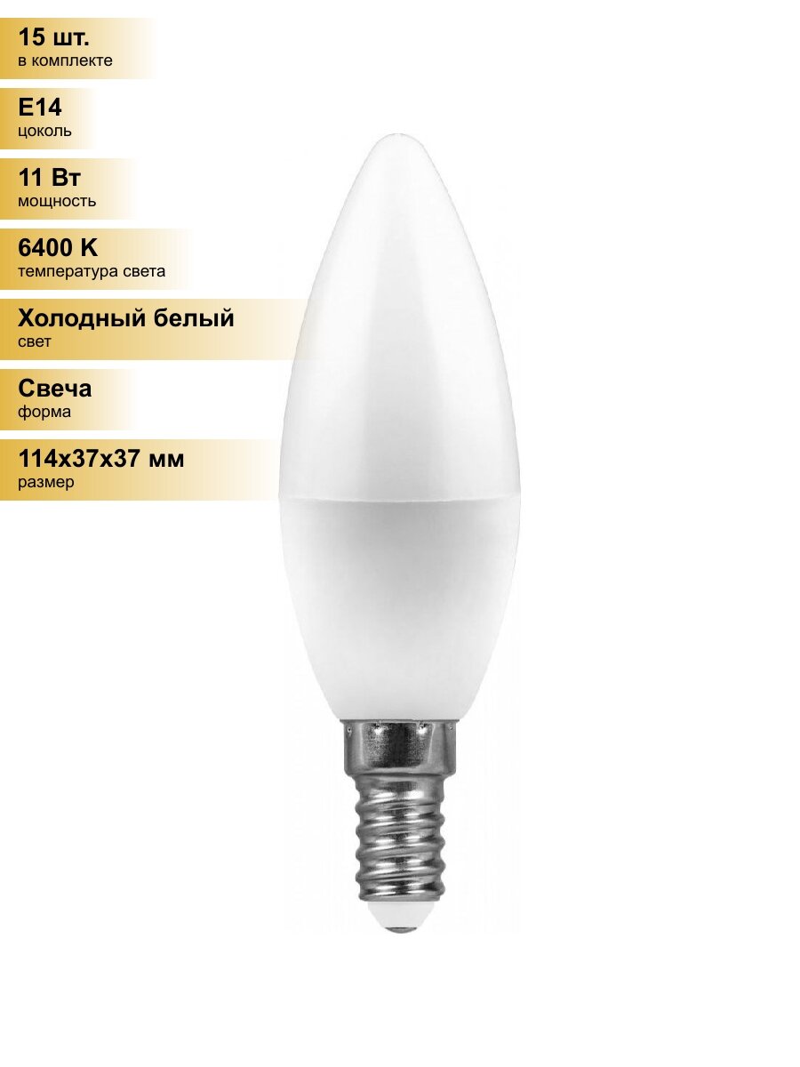 (15 шт.) Светодиодная лампочка Feron свеча C37 E14 11W(955lm) 6400K 6K матовая 114×37 LB-770 25943 Холодный белый. Цоколь E14: сравнение цен, характеристики, фото, актуальное наличие и цены.