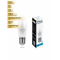 (15 шт.) Светодиодная лампочка Feron свеча C37 E27 7W(600Lm) 6400K 6K матовая 100×37 LB-97 25883 Холодный белый. Цоколь E27: сравнение цен, характеристики, фото, актуальное наличие и цены.