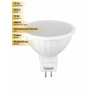 (15 шт.) Светодиодная лампочка General MR16 GU5.3 15W 4500K 4K 50×48 пластик/алюм GLDEN-MR16-15-230-GU5.3-4500 661071 Нейтральный белый. Цоколь GU5.3: сравнение цен, характеристики, фото, актуальное наличие и цены.