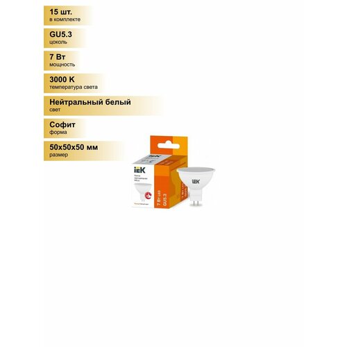 (15 шт.) Светодиодная лампочка IEK MR16 GU5.3 220V 7W(630lm) 3000K 2K 50×50 матов. ECO LLE-MR16-7-230-30-GU5 Нейтральный белый. Цоколь GU5.3: сравнение цен, характеристики, фото, актуальное наличие и цены.