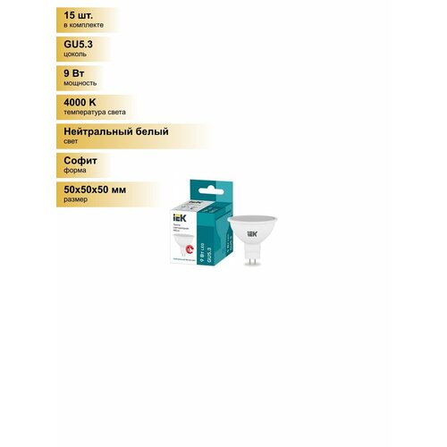 (15 шт.) Светодиодная лампочка IEK MR16 GU5.3 220V 9W(810lm) 4000К 4К 50×50 матов. LLE-MR16-9-230-40-GU5 Нейтральный белый. Цоколь GU5.3: сравнение цен, характеристики, фото, актуальное наличие и цены.
