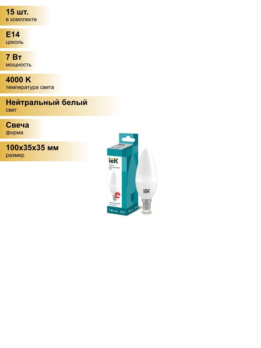 (15 шт.) Светодиодная лампочка IEK свеча C35 E14 7W(630lm) 4000K 4K 100×35 матов. ECO LLE-C35-7-230-40-E14 Нейтральный белый. Цоколь E14: сравнение цен, характеристики, фото, актуальное наличие и цены.